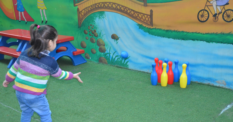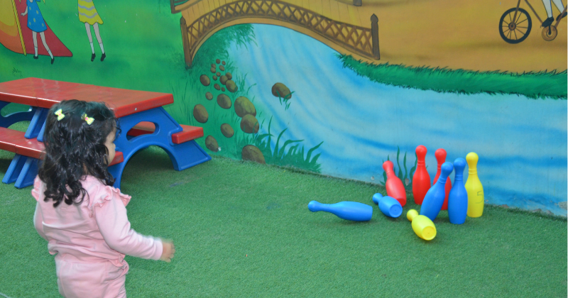 Bowling frequently can help your child develop crucial hand-eye coordination and depth perception. It can also help kids practice their Mathematical skills through scorekeeping. Bowling also helps build gross motor skills. Picking and rolling the ball down the lane helps build those large muscles in our arms and legs. Making those muscle groups helps kids improve other skills such as running, throwing and playing.