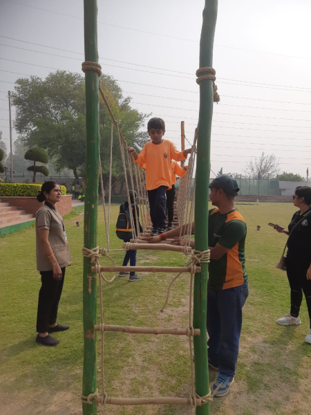 It was a camp that offered a positive and safe environment where children could gain confidence and self-esteem. This camp helped them to develop basic athletic skills such as balancing coordination and to enjoy the adventures. The students arrived bubbling with excitement as they headed to participate in such activities for the first time. Many activities that enhance the gross motor skills were set up on the field. It encompassed an array of adventure activities like Commando Net, Commando Crawl, Zorb Roller, Wall climbing, Zip Line, Dancing Bamboo, Ladder climbing, Ladder walk, Hanging Tyres and tug of war. The children participated with zeal and were delighted when they completed each task. Every activity aimed at honing a different skill. The students managed to cross the Zip Line confidently. Students had a joyful experience. The camp concluded with unforgettable memories.
