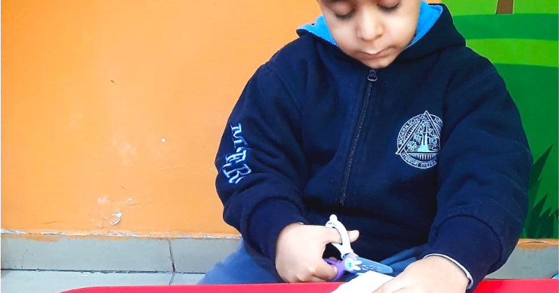 Students of class KG were thrilled to cut small pieces of paper with the help of baby scissors. Learning to cut with scissors helped to build hand strength, develop hand-eye coordination, and improve bilateral coordination and attention to tasks.