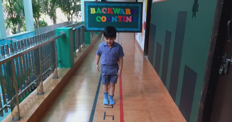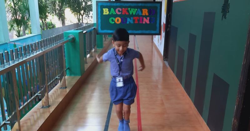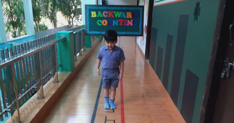 KG students enjoyed learning backward counting by hoping on the numbers written on the floor.