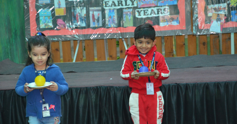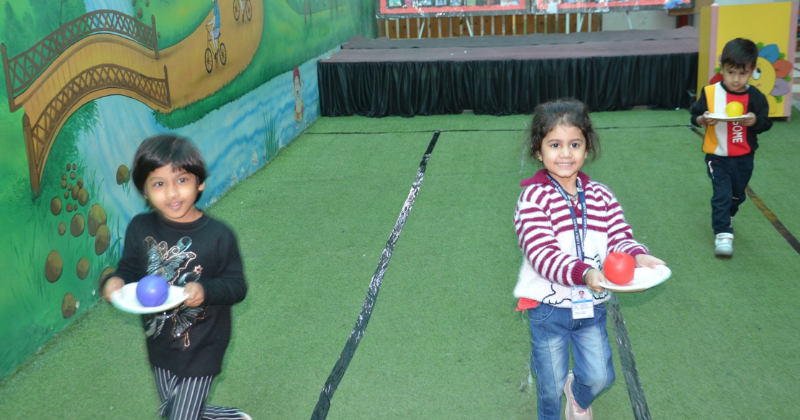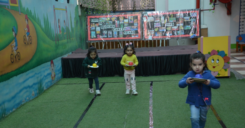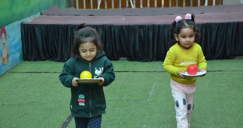 In the Pre-Nursery class, a balancing ball on a paper plate race was conducted. Each child was provided with a paper plate and a ball of the same size. The objective was to balance the ball on the plate while walking from one point to another. The activity aimed to enhance the children's coordination and concentration skills. They enjoyed the excitement of the race and cheered each other on. Overall, it was a fun and interactive activity for the Pre-Nursery class.