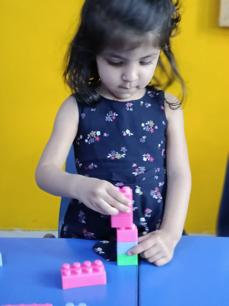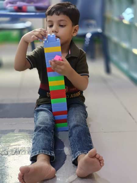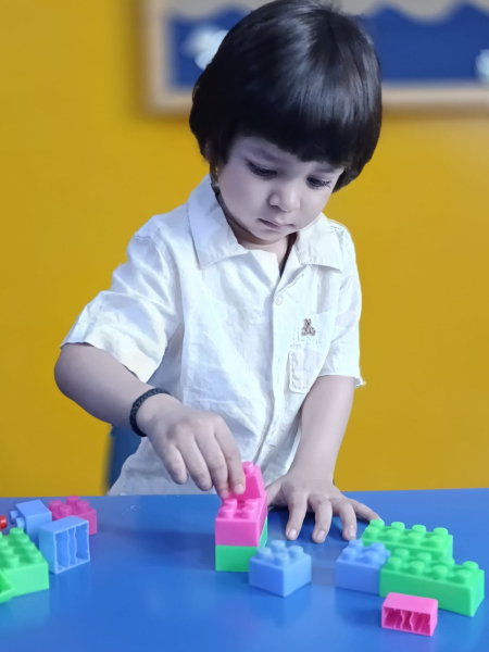 The Pre-Nursery class participated in a block-building activity designed to enhance their motor skills and creativity. The children were provided with colourful blocks of various shapes and sizes. They constructed towers and other imaginative structures. This hands-on activity not only encouraged teamwork and communication but also helped in developing their spatial awareness and problem-solving abilities. The session was a great success, with the kids thoroughly enjoying the experience while learning valuable skills.