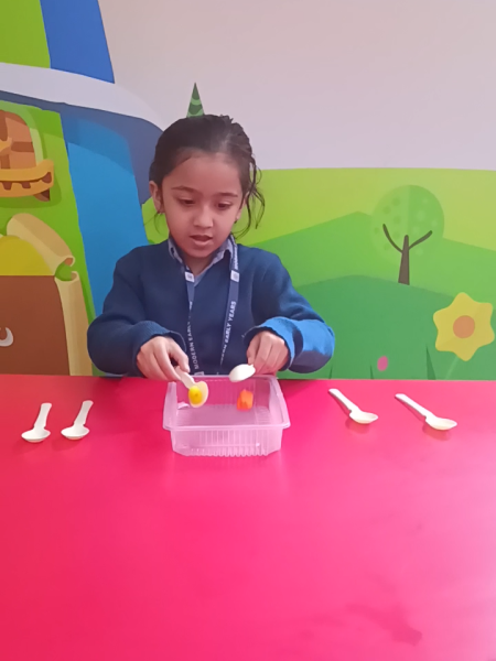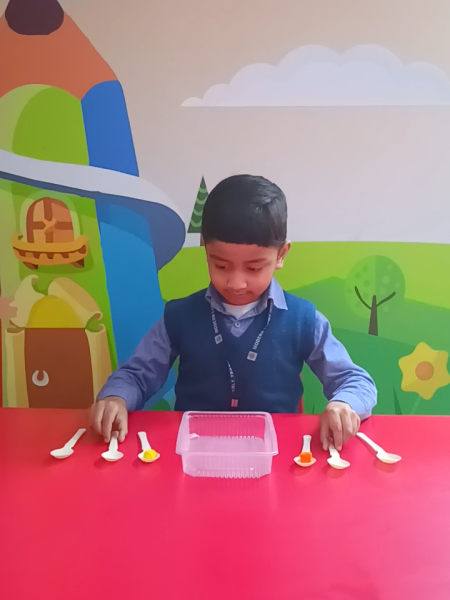 In a KG class at Modern Early Years,Deepali a brainstorming activity aimed at enhancing bilateral coordination was conducted. Children practiced using both hands to maneuver a crayon along designated lines, improving motor skills, concentration, and eye-hand coordination. Through hands-on practice, students developed independence as they experimented with crayon movements. Overall, the activity provided a valuable learning experience, aiding in the improvement of concentration and eye-hand coordination in the children.