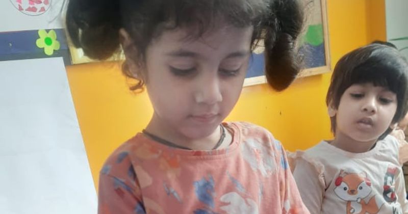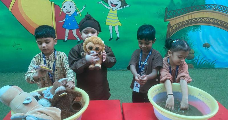 They also engaged in a thrilling ‘scrounge and find brown colour’ activity. Thereafter, the little munchkins were surprised to see the magic of mixing colours. The amazement on seeing blue and red colour mixing and turning into brown, was evident on their faces.