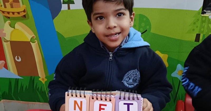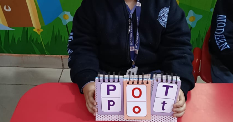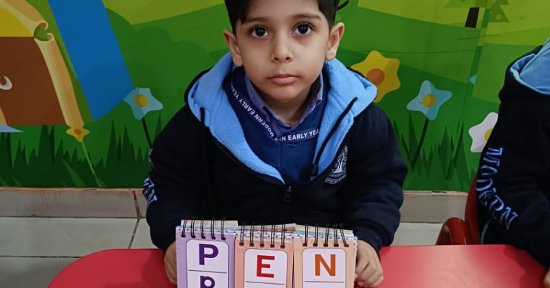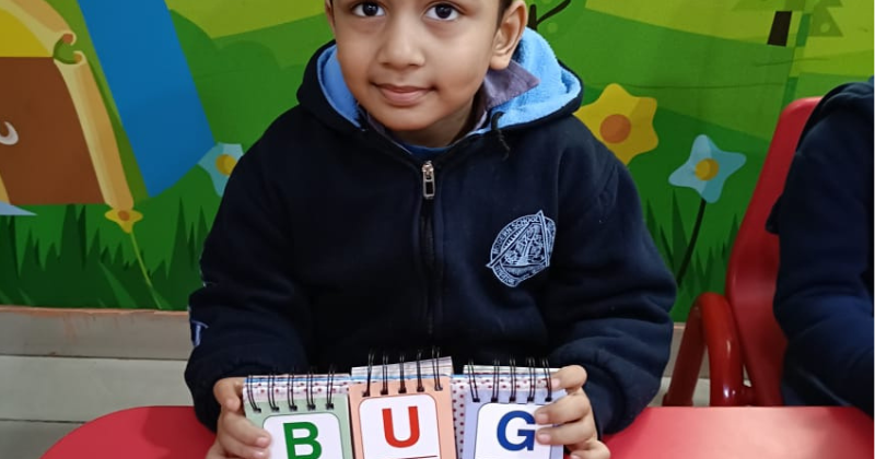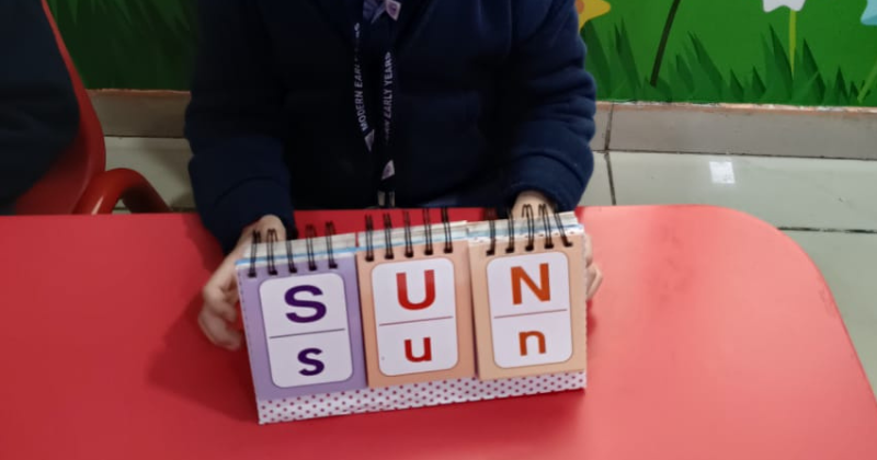 CVC Words - Class KG students enjoyed forming 3 letter CVC words by flipping the pages of a word calendar.