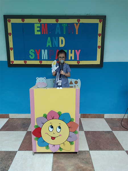 To inculcate the feeling of Empathy and Sympathy, students of KG-A performed in the assembly today. The assembly focused on the importance of Empathy and Sympathy as they are vital in almost all aspects of daily life. A beautiful thought on love, compassion and empathy was presented along with the talk about the same as the real pillars which we need to build within ourselves to become a better human being. The talent was showcased through a mesmerizing dance.
