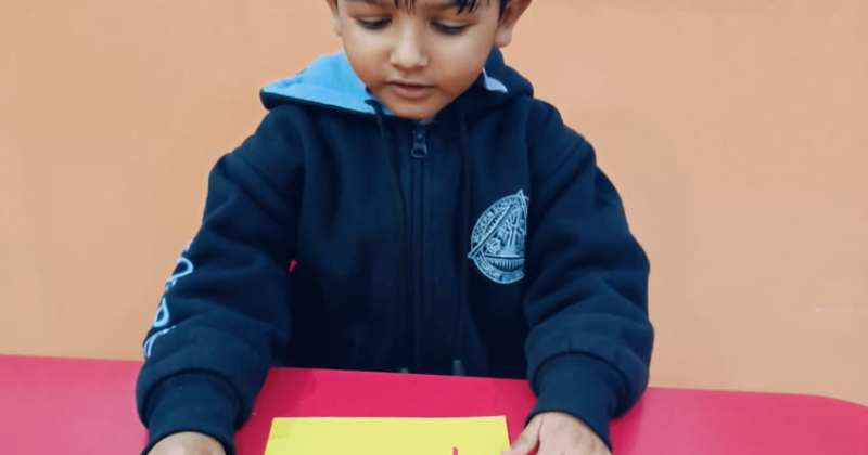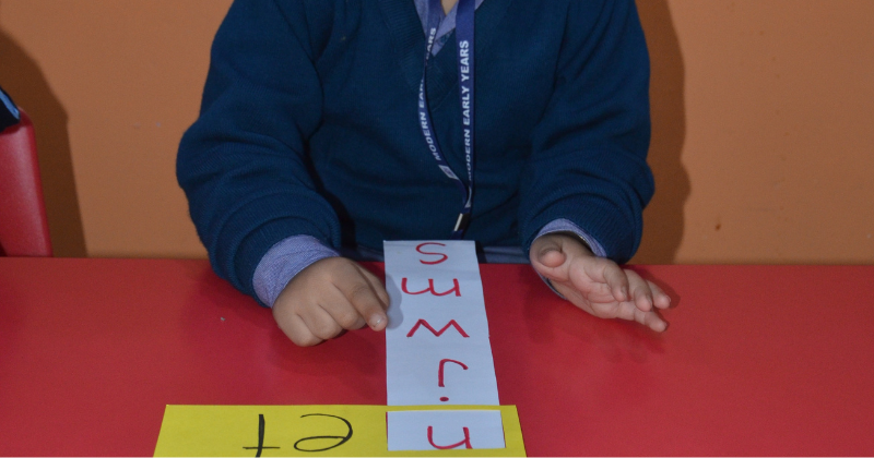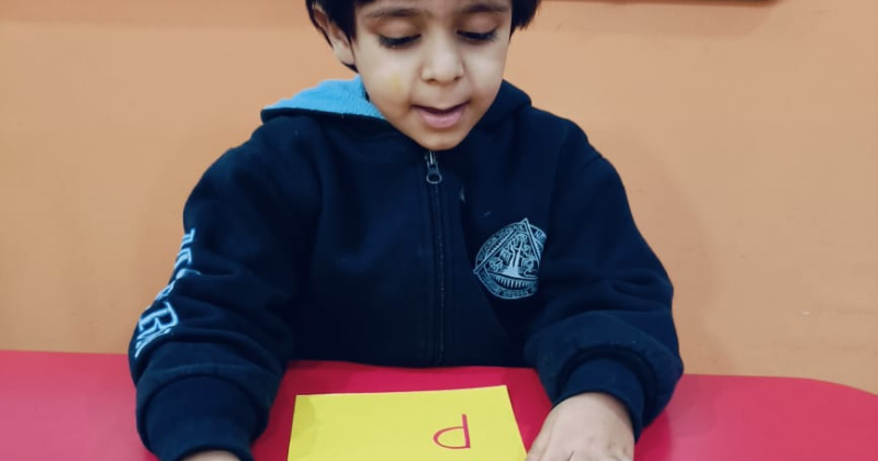 Students of class KG did recapitulation of ‘et’ family words with a letter strip, by sliding it up and down.