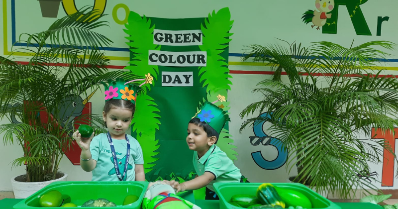 The objective of the Activity: The motive of celebrating green day was to make the students aware of how colour makes our world a better place and its significance. Students looked gorgeous and enthusiastic in their astonishing green attires. Classrooms and boards were decorated with green-coloured objects, giving a graceful appeal to the environment. Students participated in making the green color Dino, as a takeaway and participated in the plantation activity. These activities were conducted to develop their fine motor & gross motor skills. Students participated in explaining the importance of the topic Go green which develops their communication skills. They enjoyed their activity and performed enthusiastically.