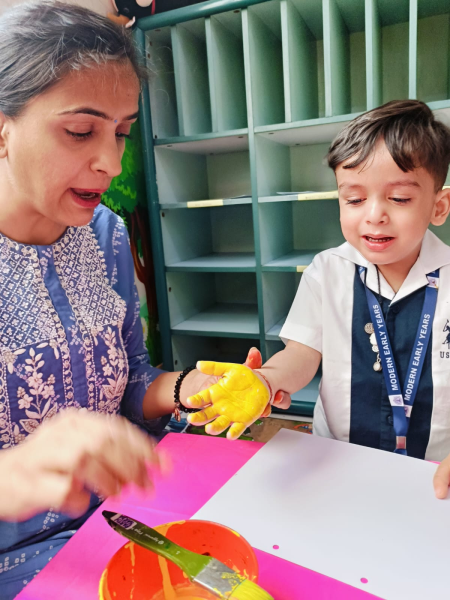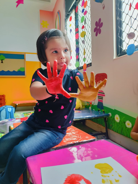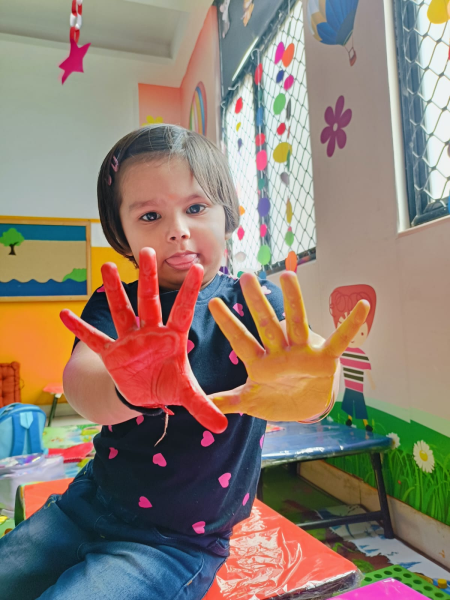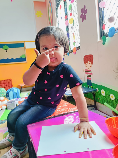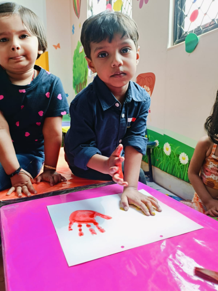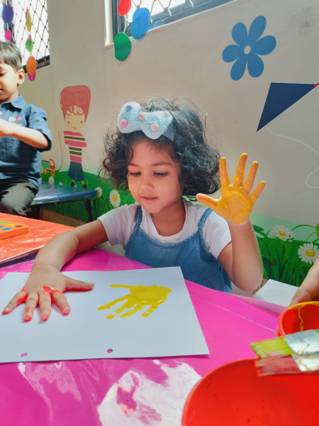 In a delightful hand printing activity held in the Pre-Nursery class, children created charming butterflies by imprinting their hands onto sheets of paper. Each child eagerly pressed their hands onto the paper, leaving colorful prints that would later be transformed into vibrant butterfly wings. The classroom buzzed with excitement as the young artists adorned their handprints with unique patterns and hues. Through this creative endeavor, children not only honed their fine motor skills but also unleashed their imaginations, resulting in a collection of beautiful butterflies ready to be displayed with pride.