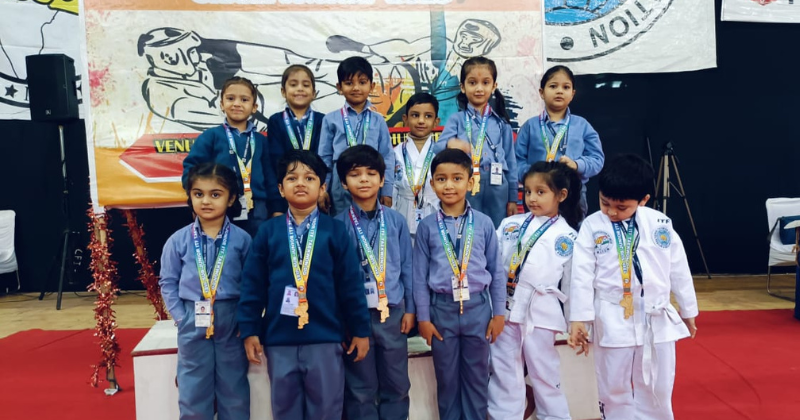 This event served as a unique platform, allowing our talented Modernites - Arya Sharma, Arham Siddique, Aanvika Banderwal, Avika Sharma, Navansh Goel, Sharanya Goel, Alishka Goyal, Dhanish Goyal, Satvik Gupta, Jayditya Aggarwal, Mourya Bansal and Zidane Yusuf from Nursery and Kindergarten classes - to unveil their remarkable Taekwondo prowess in front of everyone, resulting in the well-deserved attainment of outstanding medals for their exceptional performance.