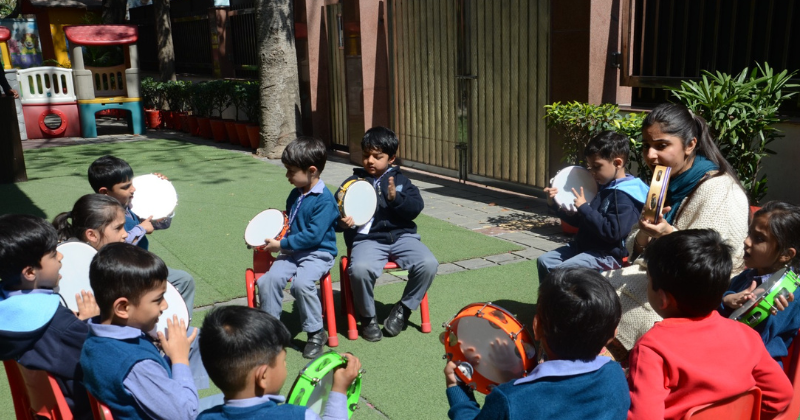 In the KG class, students engaged in a delightful activity of playing Dafli and singing the Sargam. Dafli, a small hand-held percussion instrument, added rhythm and liveliness to the musical experience. The students explored various notes of the musical scale through the Sargam, a melodic framework in Indian classical music. With guidance from their teacher, they tapped into their creativity, learning to produce harmonious sounds while developing a sense of rhythm and melody. Through this interactive musical session, the students not only had fun but also cultivated their auditory skills and appreciation for music at an early age.