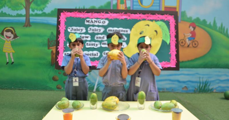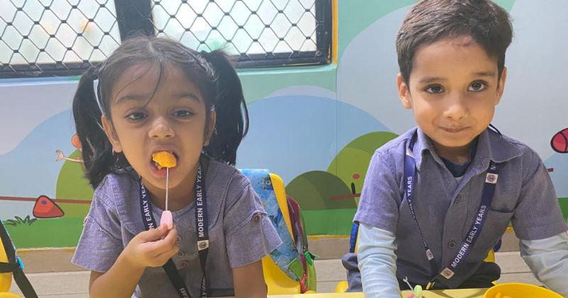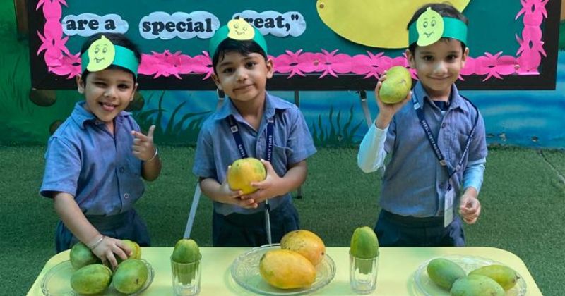 WIt was a sweet juicy morning for the little ones at Modern Early Years, Deepali when Pre-Primary students delightfully attended their school in order to celebrate Mango Party. They were super excited as mango is everybody's favourite fruit. It was a perfect day to celebrate the season of the king of fruits “MANGO” with a fun-filled learning opportunity in the form of a mango party . The Mango party mania was kicked off by introducing different types of mangoes. Children were sensitised to an array of mangoes such as dussehri, chausa and langda. The children touched, smelled, and held the mangoes in an attempt to distinguish one from the other. They were quite excited and eager to know more about mangoes and their kinds. The children were able to associate with the shape, form and size of a mango better than before.