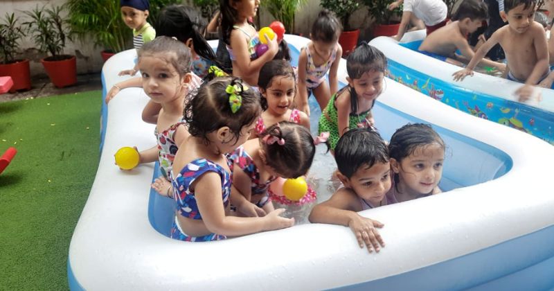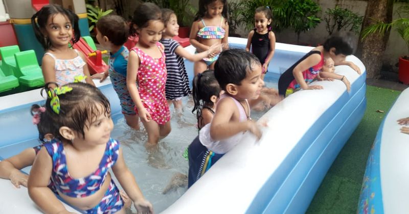 After eating the juicy mangoes the students enjoyed splash pool at school playing various water sensory games.