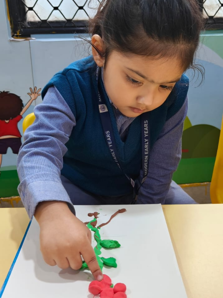 At Modern Early Years, Deepali the students of Nursery engaged in a hands-on learning experience about the parts of a plant through a delightful clay molding activity. Using clay, they creatively crafted models of plants, showcasing their understanding of roots, stems, leaves, and flowers. This interactive session not only sparked their imagination but also provided a tactile way to comprehend the structure of plants. Through this engaging activity, nursery kids gained a deeper appreciation for nature and its botanical wonders.