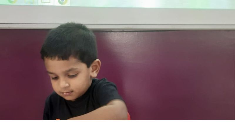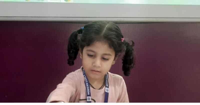 Students of Pre nursery were engaged in q tip printing and finger printing activity.