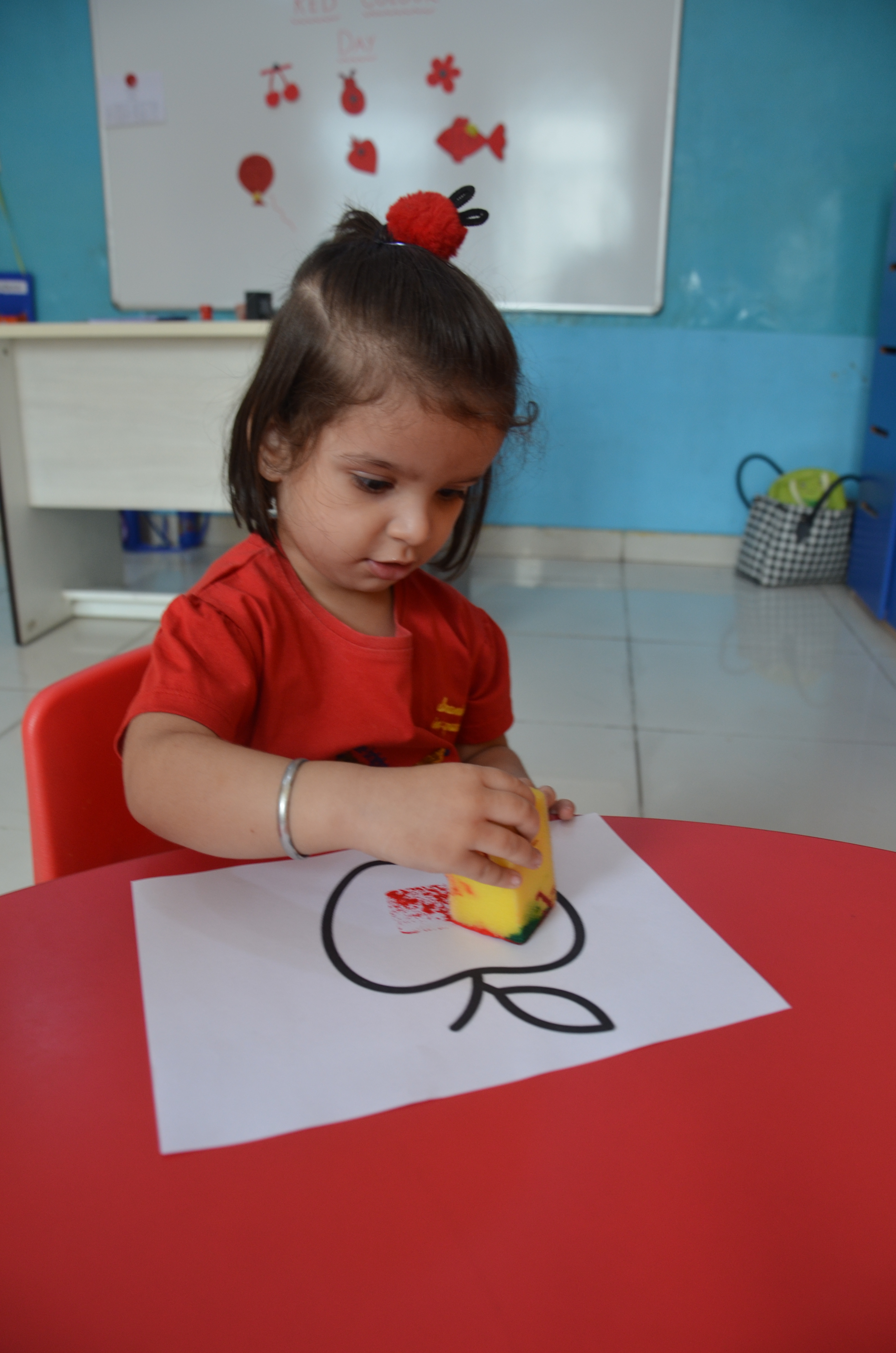 ‘Red’ colour symbolizes enthusiasm, life and vitality. The day started off with the colour red every- where red dress, red rose, red teddy, red car, red apples, red cherries, here a red………. there a red….. red red everywhere ……..our little ones spent a spectacular red day. Bulletin boards displayed red craft work made by the children.
