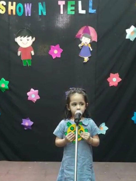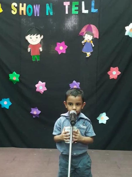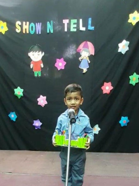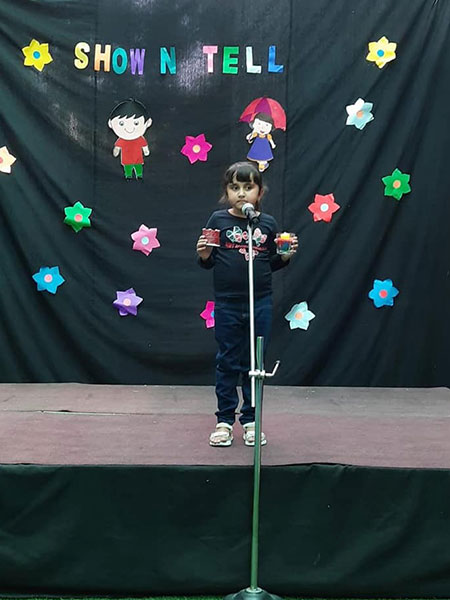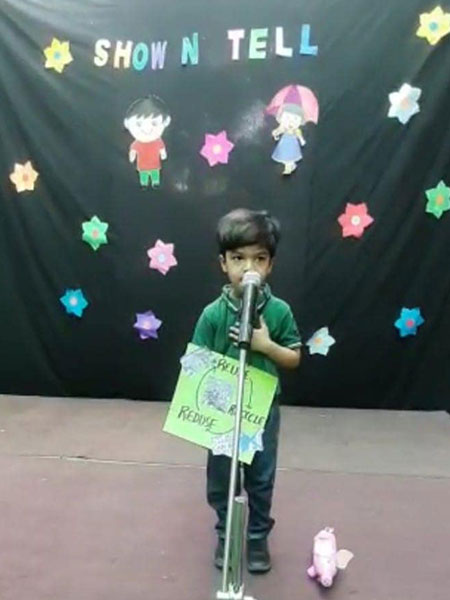 To improve the communication and descriptive skills in children “Show and Tell” activity was organised for the students of Modern Early Years, Deepali. Children described and spoke a few lines on the objects made out of waste. Tiny tots participated in the competition with full zeal and enthusiasm as they came up with various interesting objects using waste material and explained them in an impressive manner. Through this activity there was not only an enhancement in the vocabulary of the students, but a boost of confidence also seen.