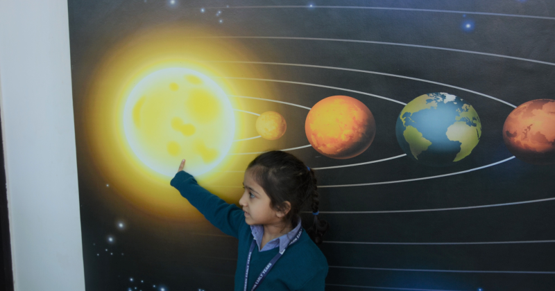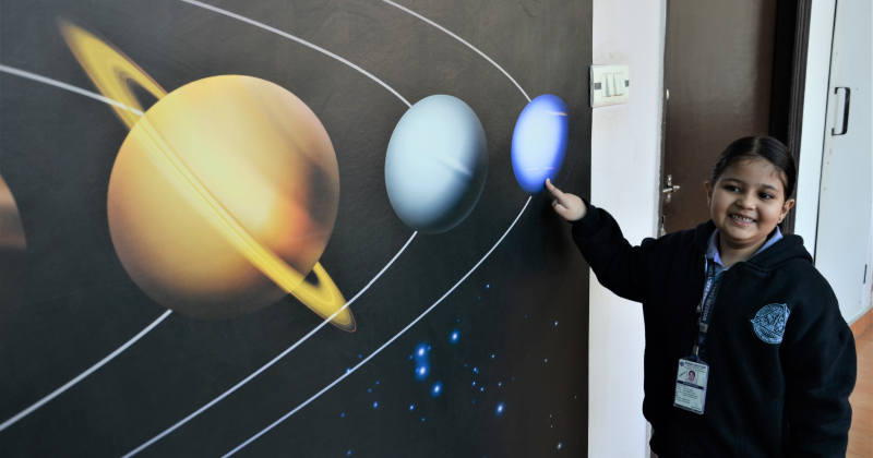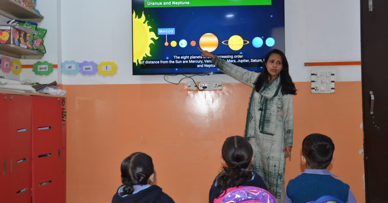 In the KG class, students were introduced to the solar system and learned simple facts about each planet. They absorbed information about planet names, positions, sizes, colors, and unique features through interactive explanations and discussions. Students eagerly engaged in the learning process and demonstrated a growing understanding of the planets and their characteristics through these discussions.