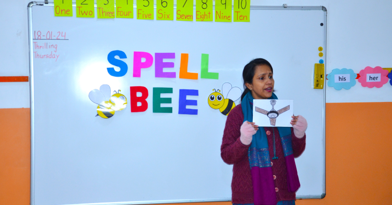 At Modern Early Years, Deepali, a Spell Bee quiz that centered around CVC words was conducted for class KG. The young participants enthusiastically showcased their knowledge and skills, forming words based on consonant-vowel-consonant patterns. The quiz aimed at evaluating their phonetic knowledge and word-building ability.