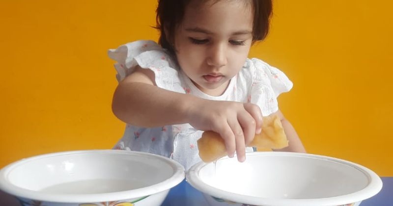 Students of class pre nursery enjoyed a sponge water fun activity. Water play activities help to develop and strengthen children's gross and fine motor skills.