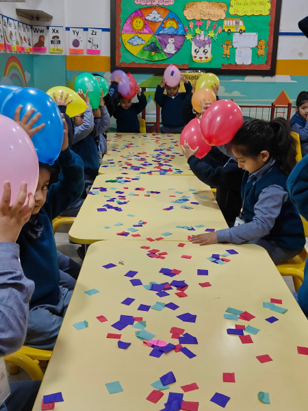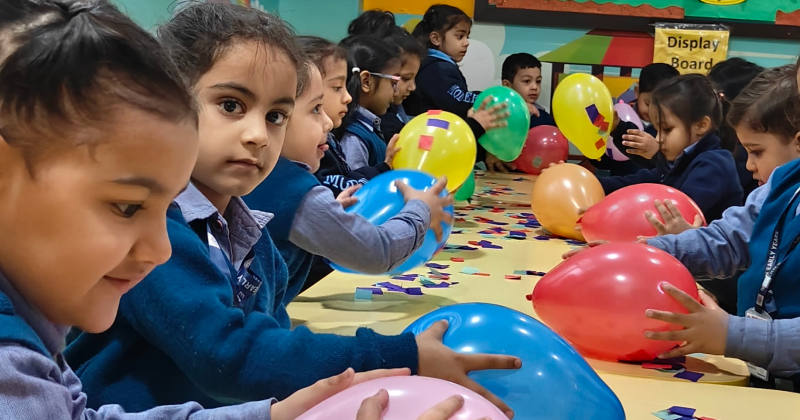 In the Nursery class at Modern Early Years, Deepali, a static electricity balloon experiment was conducted where students rubbed a balloon on their heads to generate static electricity. They then brought the charged balloon near papers placed on the table to observe the effects. This hands-on activity aimed to demonstrate the principles of static electricity in a fun and interactive way, sparking curiosity and learning among the children.