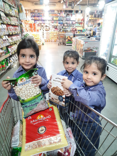 Upon arriving at Rajmandir Mart, the children were greeted by colourful displays of fruits, vegetables and various goods, creating an engaging learning environment. The visit provided a perfect opportunity for the students to discover the importance of fresh produce and healthy eating.