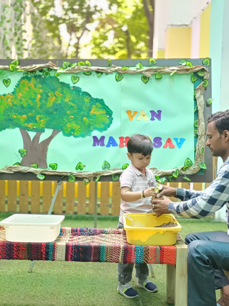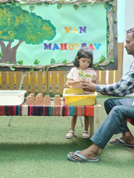 From July 1 to July 5, Modern Early Years celebrated Van Mahotsav with great enthusiasm. The week was filled with various activities aimed at raising environmental awareness among the children. Students participated in planting trees in the park and saplings in traditional 'kullads'. Craft activities allowed them to express their artistic talents while learning about nature. The children were also educated on the importance of trees and their vital role in our ecosystem. The event was a wonderful blend of fun and learning, instilling a sense of responsibility towards the environment in the students.