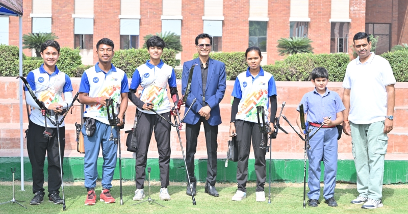 The camp began in the auditorium with felicitation and an informative session led by professional archers and esteemed guests Mr. Ravi Shankar, an accomplished Olympian and Senior Archery Coach with over 25 years of experience, Mr. Ashim Kundu, a highly Archery Coach with over 30 years of coaching experience. Mr. Satyadev Prasad, a skilled Olympian, Chief Coach in SAI and Dhyan Chand awardee and Mr. Shivam Sharma, Regional Director, SAI, Northern Regional Centre, Sonipat. Students learned about the history of archery, its techniques, and the importance of posture and focus. A live demonstration of various archery styles and equipment fascinated the audience, highlighting the precision and control required in the sport.