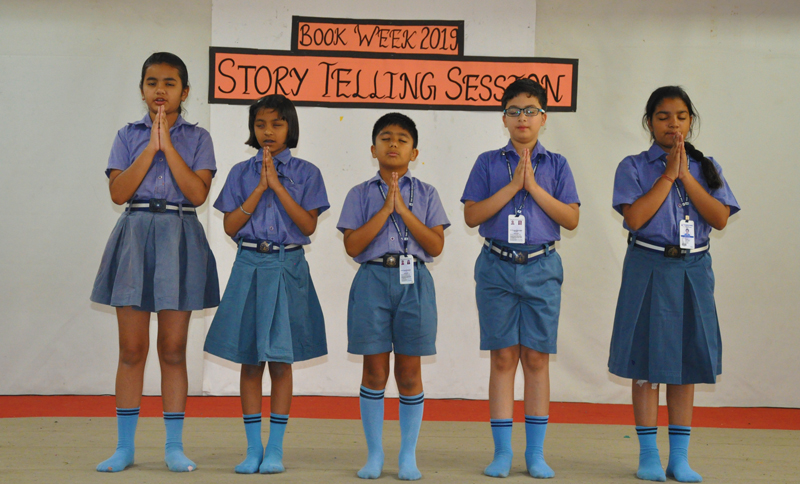 In the primary wing, ‘Book Week’ started with a storytelling session taken up by Ms. Neelam Narang, a famous storyteller -who shared an interesting story with the students about the animals and birds who wanted to become the leaders of the jungle! Towards the end of the session, she asked the students to draw who they thought should become the leader of the jungle and why. The students came up with interesting answers as to why they thought that a peacock should become the leader or a cheetah should become one.
