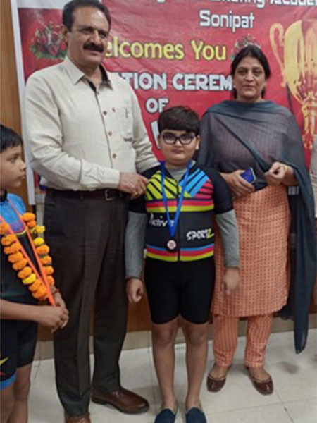 Kavish of class IV brought laurels to the school by winning the Bronze medal in the Haryana State Ice Skating Competition held at Ambience Mall, Gurgaon from October 18 to October 21, 2021. 200 students from all over Haryana participated in the championship and showcased their talent zealously. Kavish was also selected to represent Haryana in the Nationals to be held at Gulmarg in the month of December. The Chief Guest, Mr.Jagraj Singh Sahni, President of Ice Skating Federation of India congratulated and motivated all the participants and presented the medals to the deserving ones. Kavish was also felicitated for his accomplishment in the field by DC, Sonepat District on October 26, 2021
