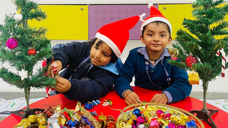 Day 1: Our young modernites passionately decorated their own Christmas trees with ornaments brought from their homes. The Christmas tree decoration project allowed the young children to be a part of the magic that Christmas encompasses while also developing fine-motor skills.
