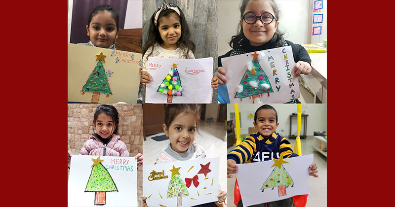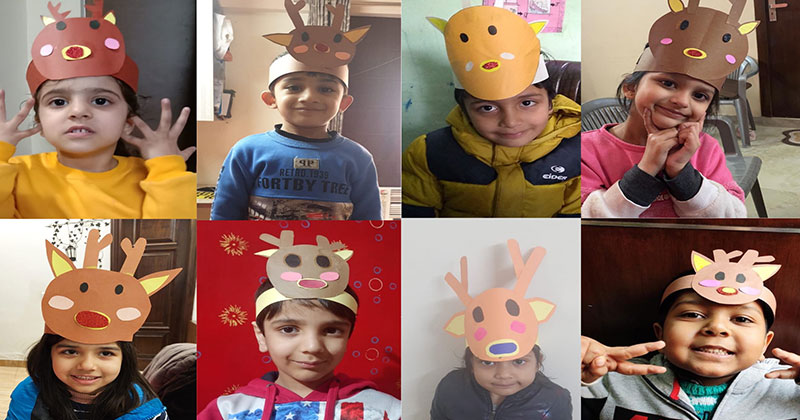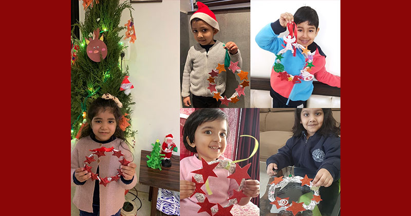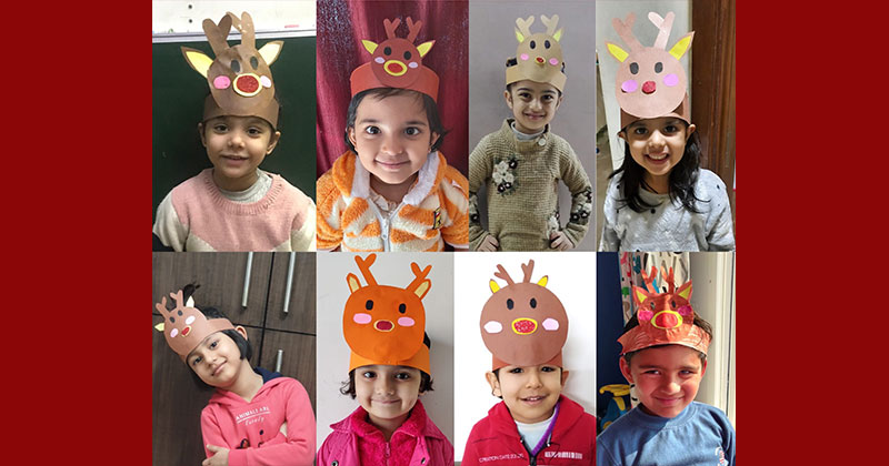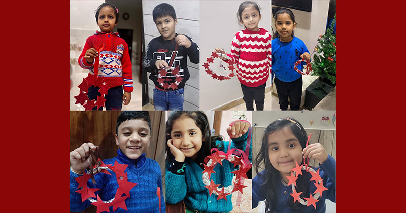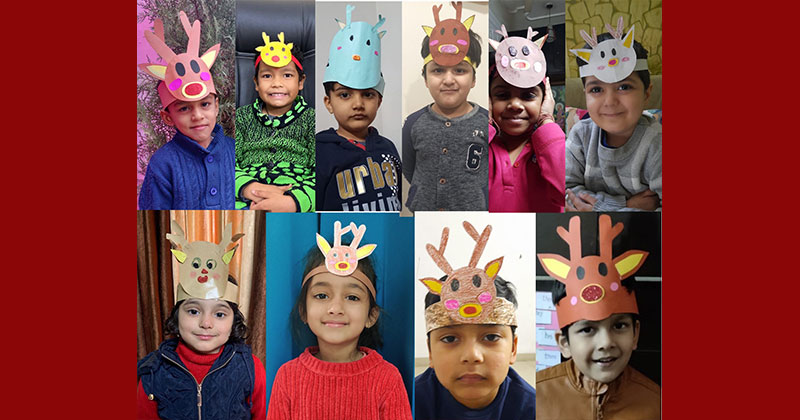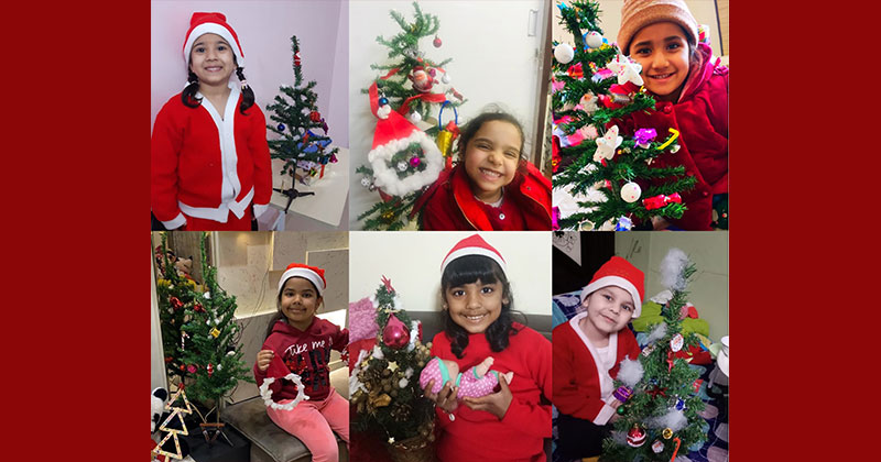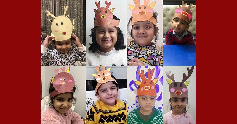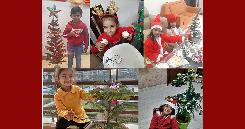 The entire week was filled with the positive vibrations of Christmas carols, fun filled activities and everybody was dressed in red and white ( Santa's favourite colours). The Christmas trees in their respective houses were decked up beautifully and a plethora of activities like making of Christmas wreath, Santa's Face, Reindeer Headgear, Snowman, Decorating the wishing sock and the plum cake was organised. The significance of the festival was explained to the students through the story of Christmas. The boundless joy of celebrating the festival was visible on the faces of all the children as they enjoyed the class Christmas party.