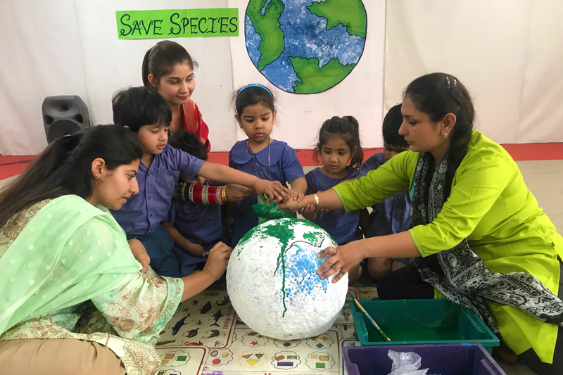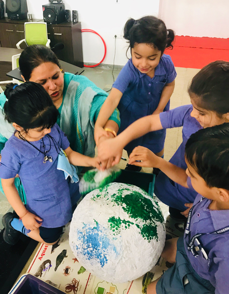 They also indulged in a craft activity in which they colored a thermocol white ball representing Mother Earth, with blue and green color symbolic of land and water.