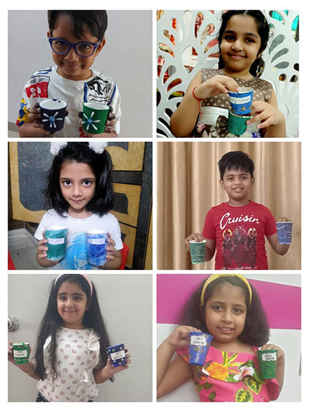 During the Earth Week , an array of creative activities were organized with a view to sensitize the children about the need to conserve natural resources and to motivate them to do their bit towards making their planet more beautiful. The week commenced with a power point presentation on the importance of Earth Day and the importance of saving water.