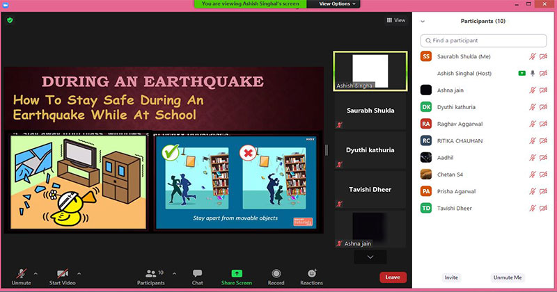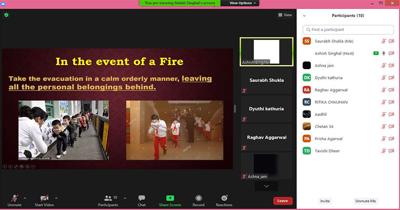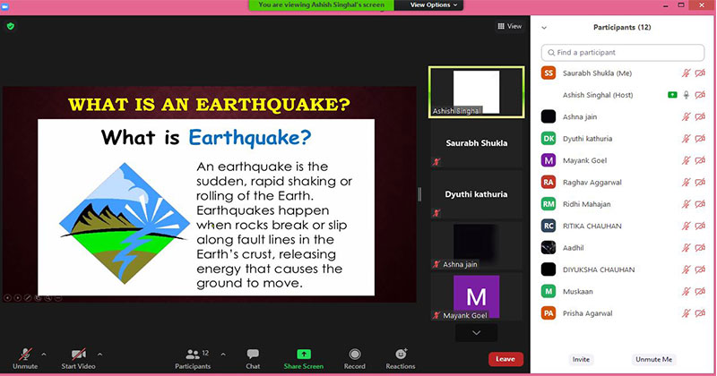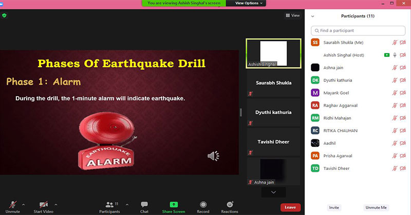 As life skills is a major part of the learning process, an Earthquake and Fire drill was organised for the students of classes S4 and S6 on February 26, 2021 in an online session. During the drill the students were shown a Power Point Presentation on the safety measures that one needs to take in case of any natural calamity. All the students actively participated in the drill and they also cleared their doubts related to the calamities. It was an engaging learning experience for the students.