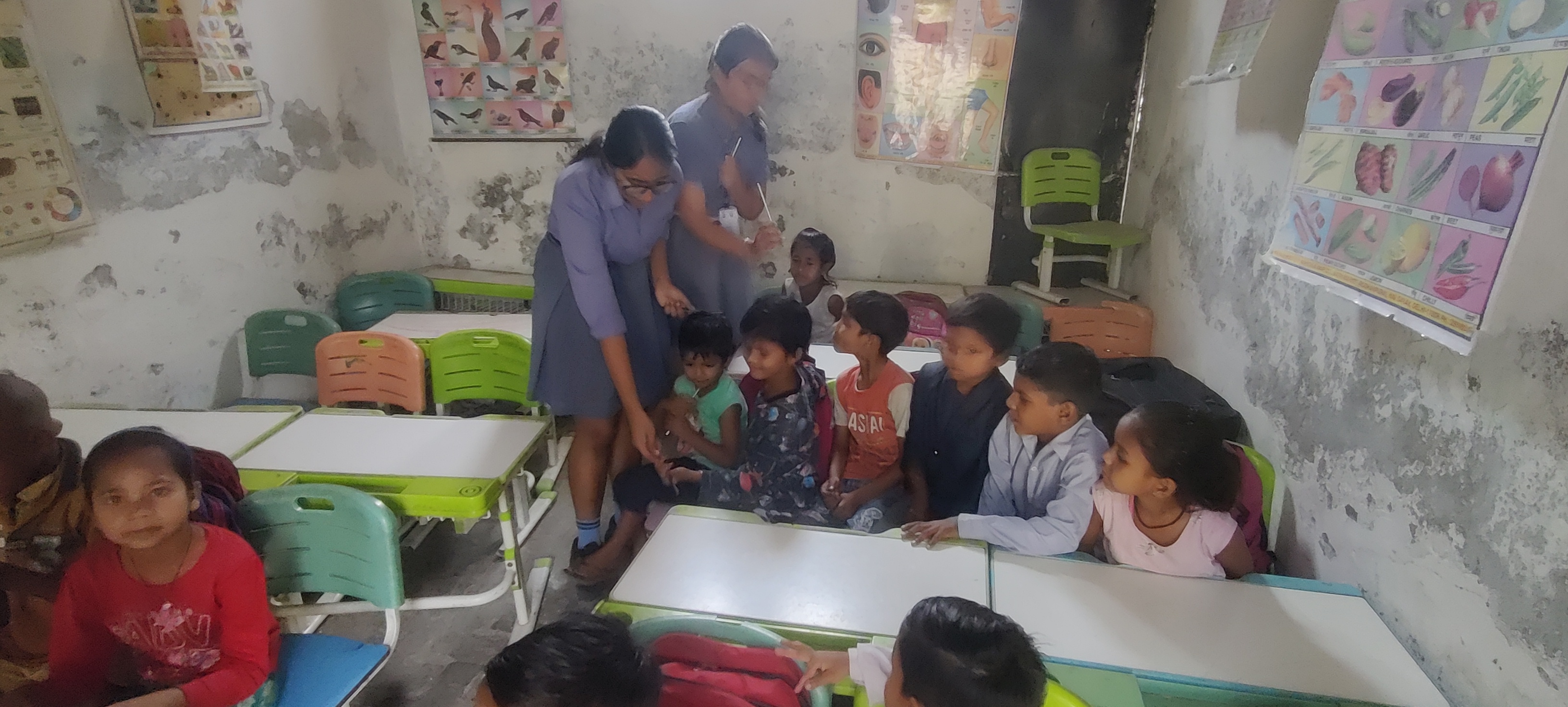 The aim of the excursion was to imbibe the sense of non-experimental research and to provide students with experiences outside their everyday activities as well as understand the importance of education. The students witnessed the working of the school which commenced with an assembly.They visited their classrooms and interacted with the students. They also donated books and stationery to the school.