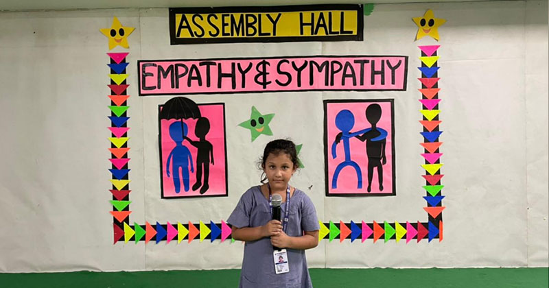 To inculcate the feelings of Empathy and Sympathy, students from classes Nur- P2 presented an assembly on July 22, 2022. The assembly focused on the importance of these virtues as they are vital in almost every aspect of daily life A beautiful thought on love, compassion and empathy was presented along with talks and thought provoking poems were presented by the students as these are the real pillars which we need to build within ourselves to become a better human being.