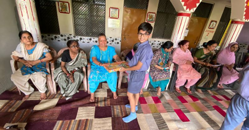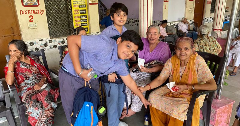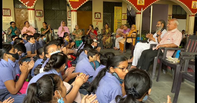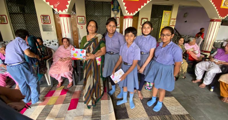 They were greeted by a representative of the Old Age Home who gave a brief description of the home and those residing there. All students got the opportunity to meet and converse  with the residents of the home who hailed from different parts of India and were from diverse backgrounds. Interacting with them made the students know about their past, the hardships they were enduring in life and their experiences. The students were sensitised towards the needs of the elderly. They also donated packed snacks, indoor games, and gifted hand-made cards to the elderly joining them in fun activities like singing songs and played antakshari. The elderly blessed the students and expressed their gratitude for paying them a visit.