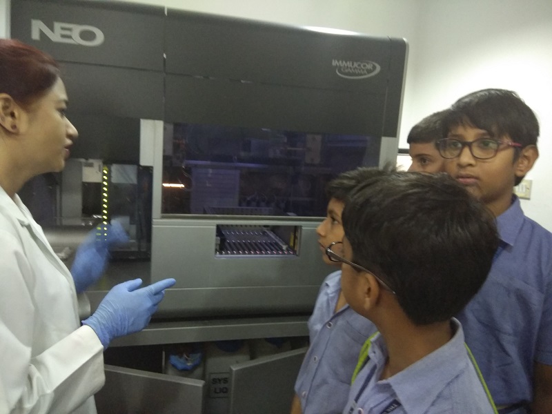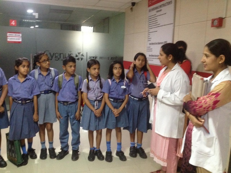 Group A visited the blood bank while Group B visited the Cygnus Hospital. This was a unique learning experience for the students, wherein they observed different types of equipment to test the blood groups and learned about hemoglobin, plasma, platelets, and HIV in the blood bank. They learned what is blood donation, the importance of donation and the procedure for donation as well.
