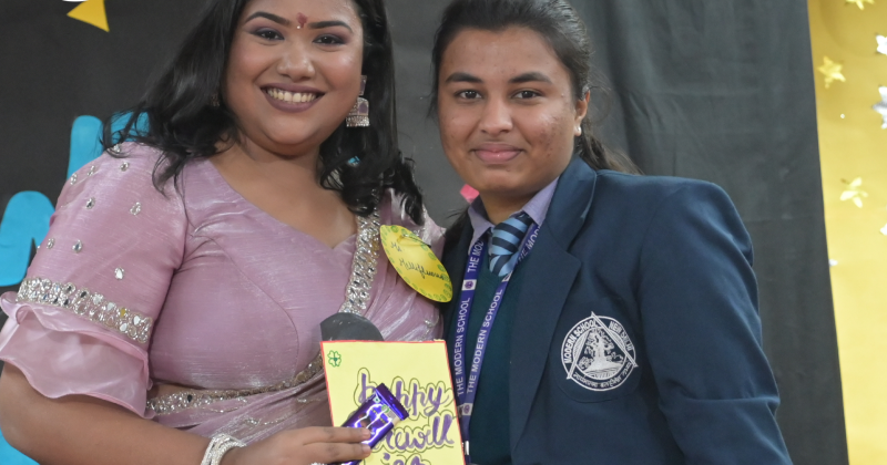 Recognition and appreciation were bestowed upon the students as the school Principal, Mr. Rajiv K Shrivastav, and Ms. Meera Malhotra, the Academic Coordinator, announced winners and adorned them with sashes and bouquets. Palak Tushir and Arnav Jain were honored with the titles of Ms. Modernite and Mr. Modernite respectively. Following a scrumptious lunch, the graduating students donned their gowns and caps for the Graduation Ceremony.