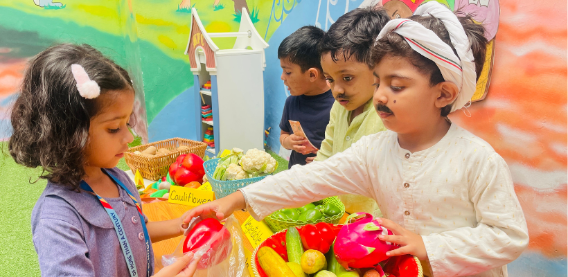 They had the chance to portray roles as vendors or sellers in the vibrant market setting, where various fruits and vegetables were artfully displayed. This not only gave the children a fun experience but also helped them learn valuable lessons about using money to make purchases and reinforced their understanding of fruits and vegetables. Through their active engagement in the role play, the children not only had an enjoyable time but also honed their cognitive abilities, social skills, and physical development.