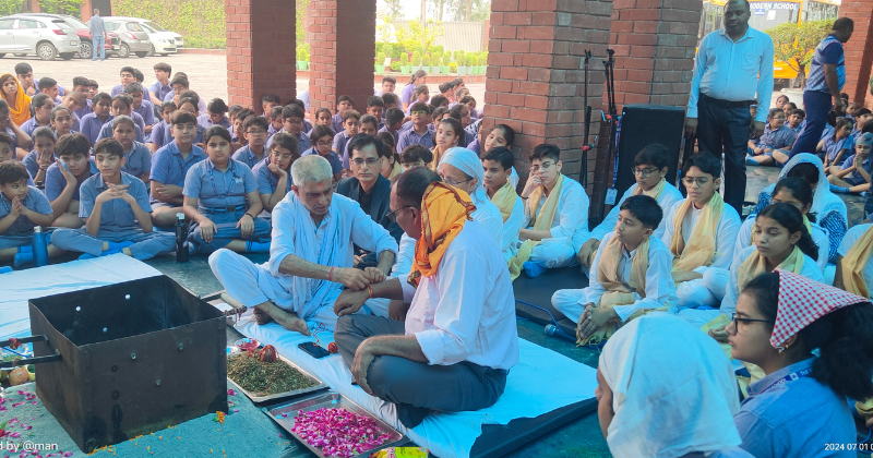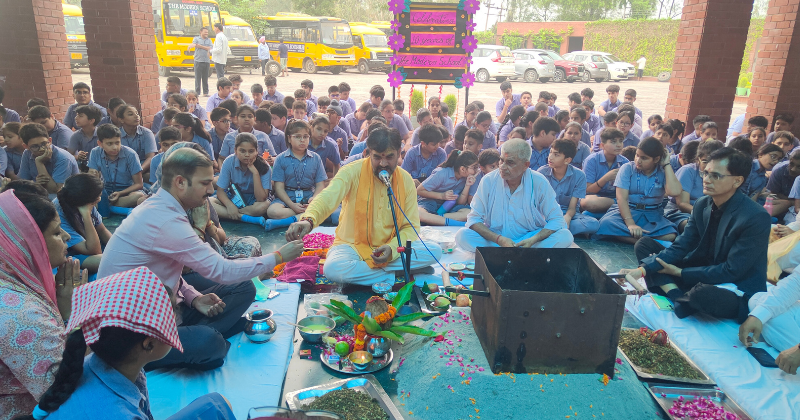 The ceremony began with the lighting of the sacred fire, followed by chants and offerings led by our school. Students and teachers participated in the ritual, offering prayers and flowers to the divine fire. The ceremony aimed to purify the mind, body, and soul marking the celebration of the completion of 10 glorious years.