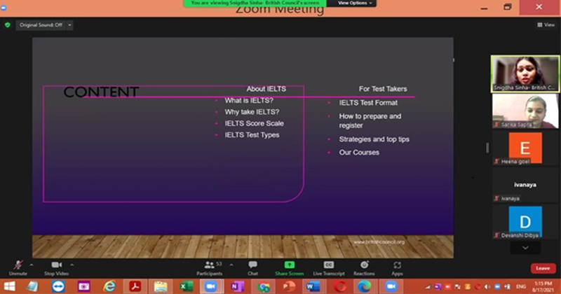 The Modern School, ECNCR in collaboration with British Council, Delhi organised a virtual session on August 17,2021 to guide the students understand the nuances of IELTS exam. All the students participated with great enthusiasm.
