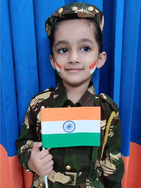 Kashvi of class KG-B showcased her talent by singing - ' Hum honge Kamyaab ek din'. All the children were excited and happy to make the Independence Day craft in which they made a tri-colour cap. The day ended with all of the little one's singing and doing action on the song- 'Nanha Munna Rahi hu'.
