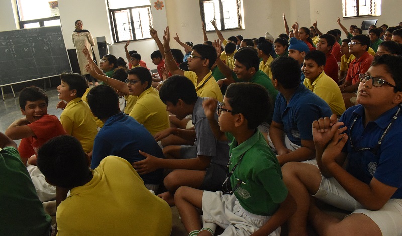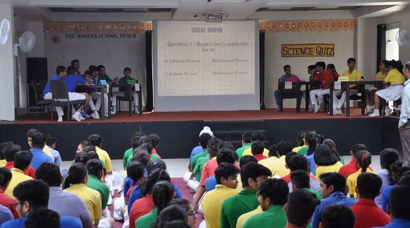 The Modern School, ECNCR organised an Inter-house Science Quiz for classes S1 to S7 in Mini Auditorium on October 09, 2019. The quiz took place in two separate sessions, one for classes S1 to S3 and another for classes S4 to S7. All the four houses participated with great zeal and enthusiasm. The objective of the quiz was to create scientific temper, enhance a deep sense of curiosity and making the learning of science more interesting through fun. As a trivia based on science, the event contained many questions related to physics, chemistry, and biology. The quiz consisted of rounds like visual round, rapid-fire round, buzzer round and MCQ round.