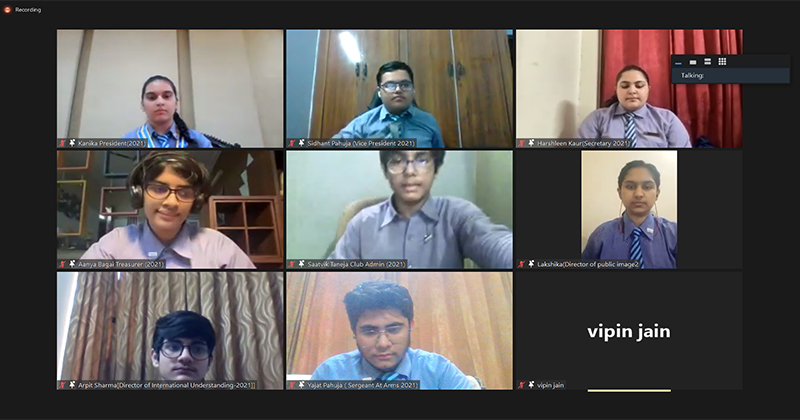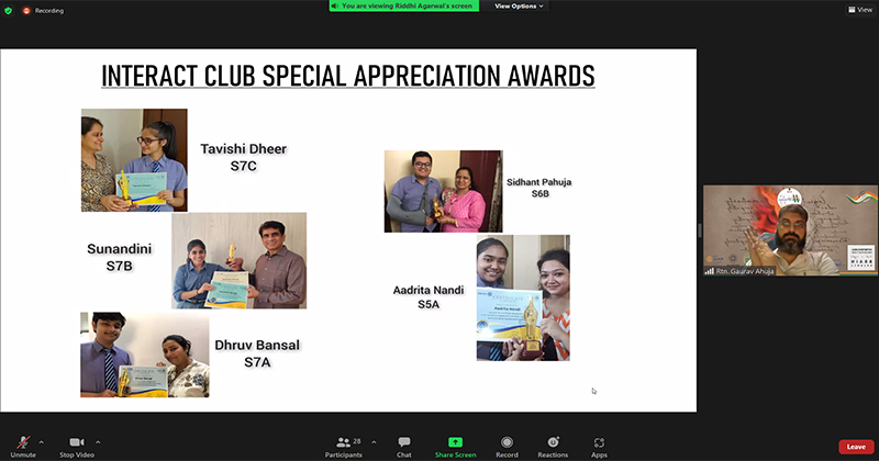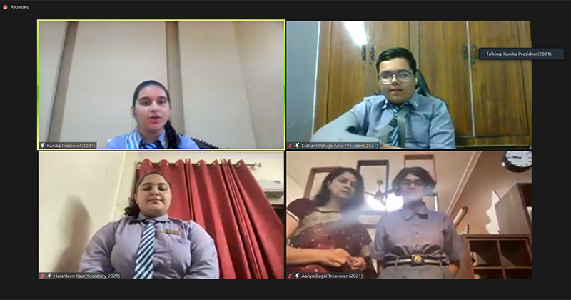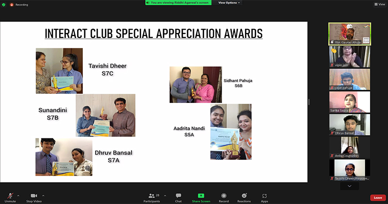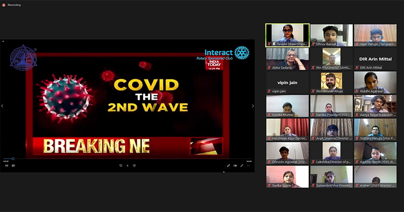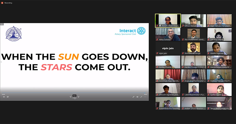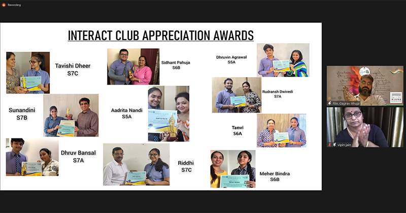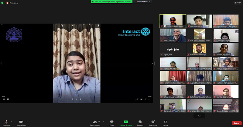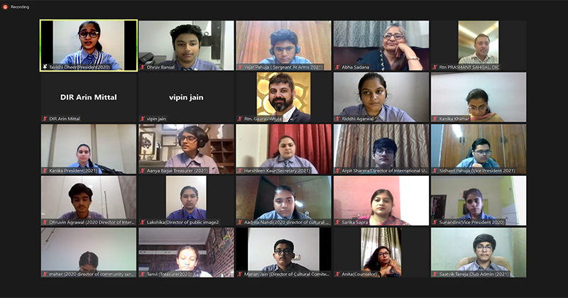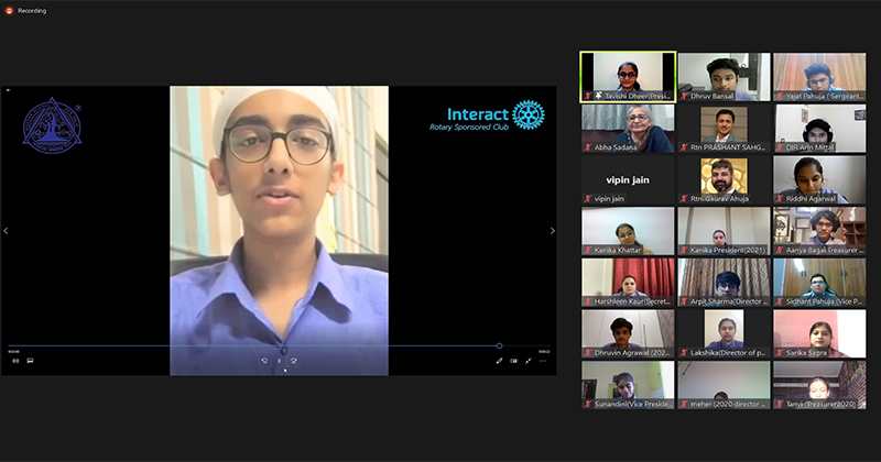 The virtual Installation Ceremony for the Interact Club of the school was held on September 15, 2021. The ceremony commenced with the National Anthem followed by virtual lamp lighting and Ganesh Vandana. The Principal, Ms. Abha Sadana, in her address, welcomed the prominent Rotarians. She also congratulated the members of the newly elected council.