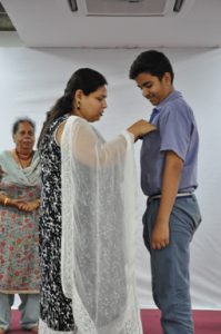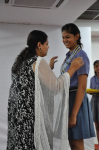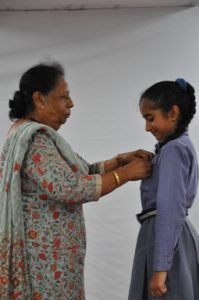 The new office bearers were announced and were conferred with badges by honourable Headmistress, Ms Rimpy Verma and Co-ordinator, Ms Swaraj Mehta. The new office bearers took the pledge to hold the school values in high esteem and deliver their duties with dedication, honesty and confidence. The Headmistress, Ms Rimpy Verma congratulated them and urged them to uphold the values. She advised them to be role models. The event concluded as the new leaders imprinted their hand prints on a screen thus becoming a part of another historical moment to be treasured and cherished.