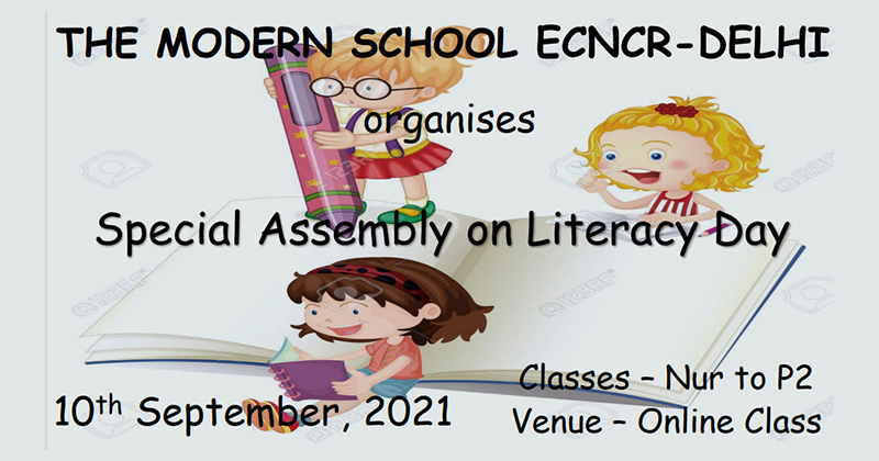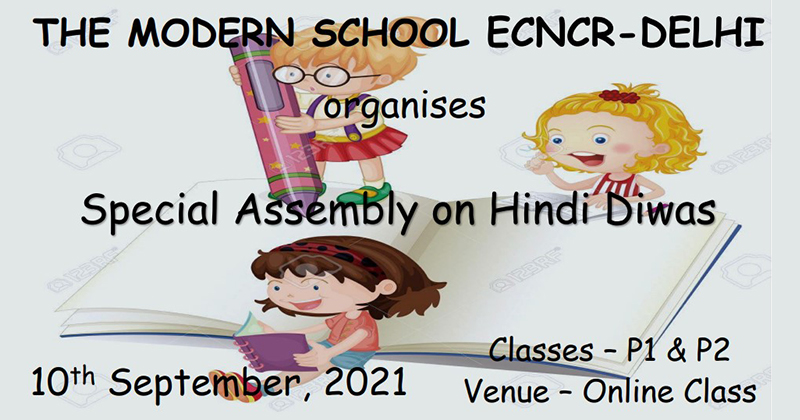 A special assembly for classes P1-P2 was held virtually on September 10, 2021 on the theme 'Literacy Day and Hindi Diwas'.