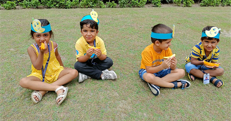 A ‘Mango and Rain Dance party’ for the students of Nursery-P2 was held on July 29, 2022. Tiny tots dressed in yellow coloured clothes relished the mangoes as they enjoyed with friends and teachers.