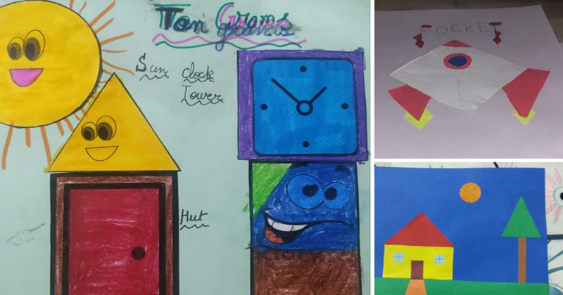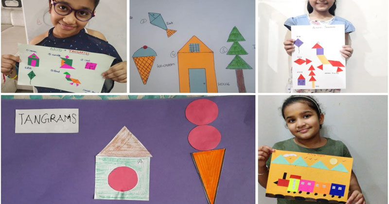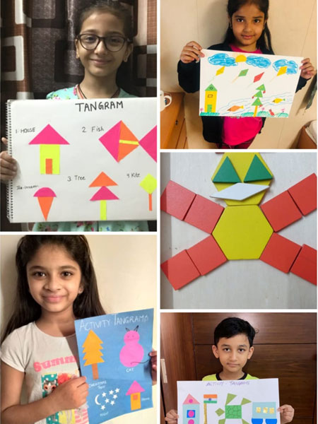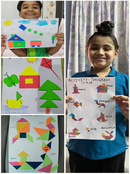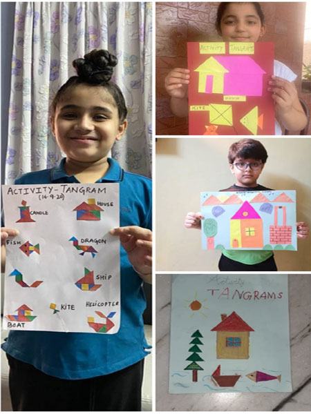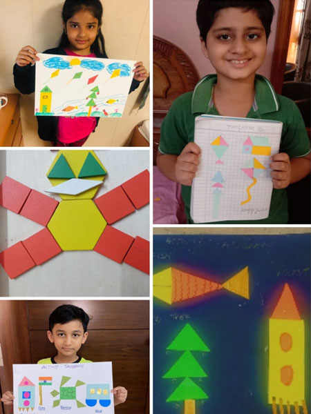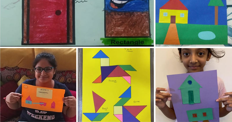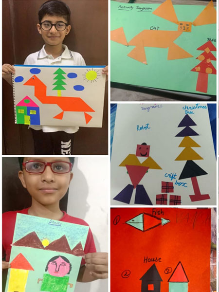 The students of Class P3 of The Modern School, ECNCR , Delhi did an activity in Maths. Shapes were introduced to them. The students used cutouts of different shapes like square, circle, triangle, rectangle. The students pasted the cutouts in the notebook and made two objects with it- a house(with square and triangle) and a bus ( rectangle and circle). Students also used their imagination and made many objects using different shapes. They had fun doing the activity.This helped them to recognize the shapes in different objects. It was a great learning experience for them.